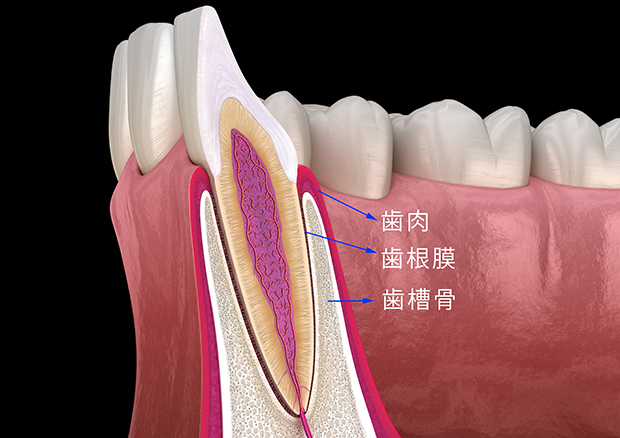 歯と歯肉の隙間(歯周ポケット)から侵入した細菌が、歯肉に炎症を引き起こし、さらには歯を支える歯槽骨を溶かしてグラグラにさせてしまう病気を歯周病といいます。