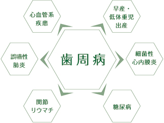 細菌を原因とする歯周病が全身疾患に密接に関係しているということが近年の研究で解明されています。